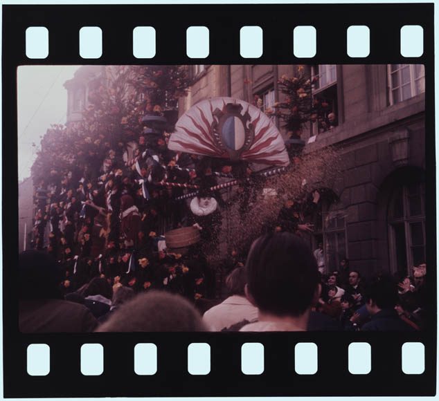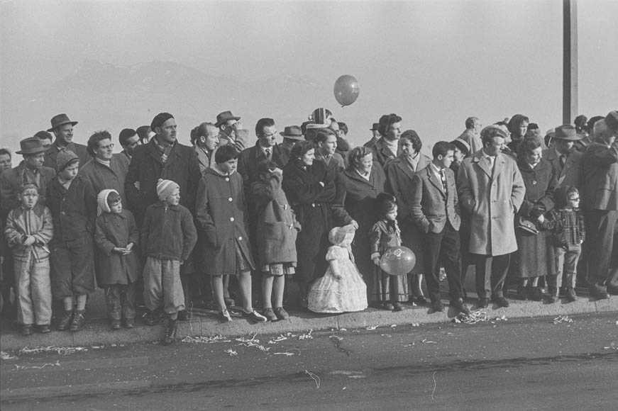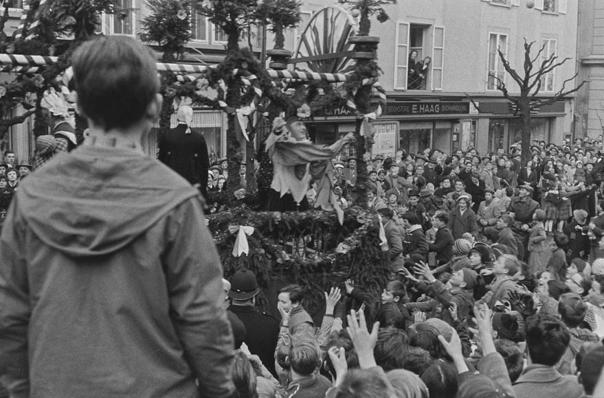 Orangenwerfen am Umzug, 1958 (STALU FDC 129/401.1, Foto Mondo Annoni) © Stiftung Fotodokumentation Kanton Luzern