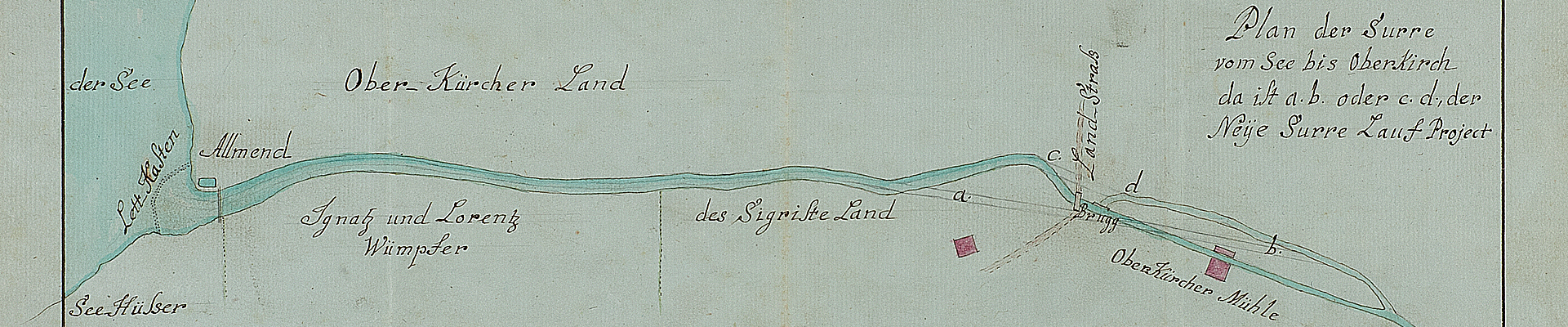 Bauwesen: Plan der Sure vom See bis Oberkirch, 1805 (AKT 27/199A.3)
