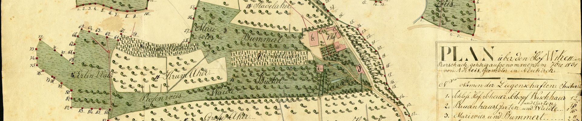 Bürgergemeinde Luzern, Verwaltungsaufsicht, Plan des Hofes Wiken in Rorschach, 1831 (A 1188/175.2)