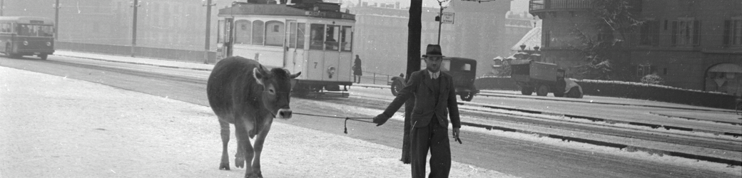 Lisa Meyerlist, Mann mit Kalb am Schwanenplatz, ca. 1940 (FDC 102/2533.2)