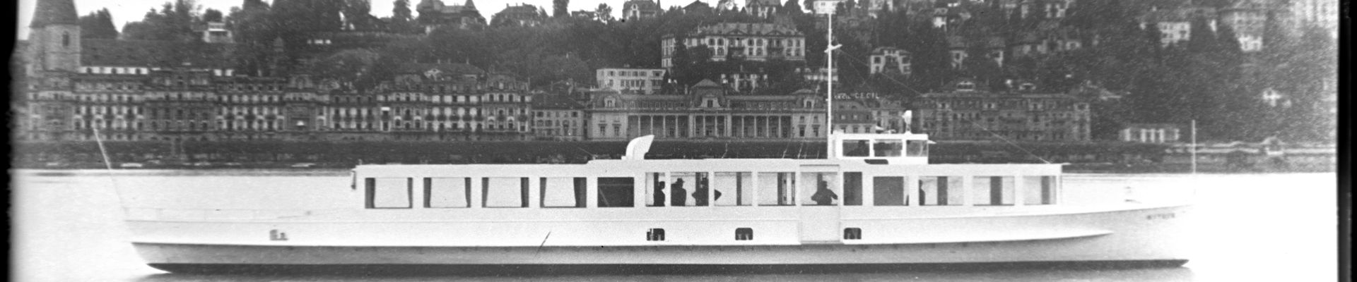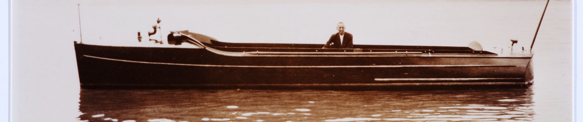 Sergei Vasilyevich Rachmaninoff im Motorboot Senar, auf dem Vierwaldstättersee, ca. 1932 - ca. 1939 (FDC 132/6162)