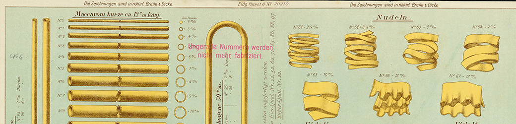 Centralschweizerische Teigwarenfabrik A.G., Luzern, Abbildung des Sortiments: Maccaroni, Hörnli, Nudeln, Fideli, Suppeneinlagen (PA 305/1.3)