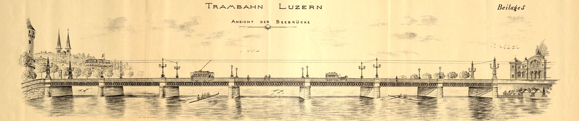 Trambahn Luzern, Ansicht der Seebrücke, Entwurf Maschinenfabrik Oerlikon (PA 376/1115)