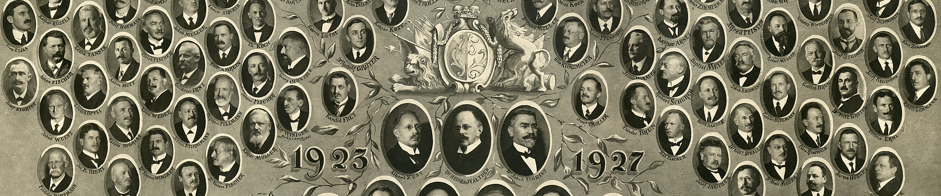 Sammelporträt , enthält Porträts von 171 Grossräten und der 7 Regierungsräte der Legislatur 1923-1927, sowie des Staatsschreibers und seines Stellvertreters und der 2 Standesweibel, 1925 (PLA 197/1)
